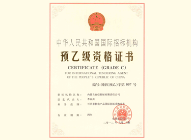 • 中華人民共和國國際招標(biāo)機構(gòu)預(yù)乙級資格證書